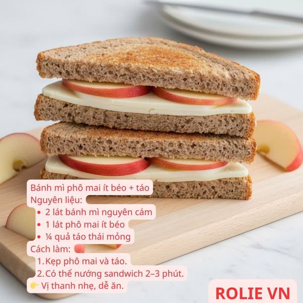 5. Bánh mì phomai ít béo + táo