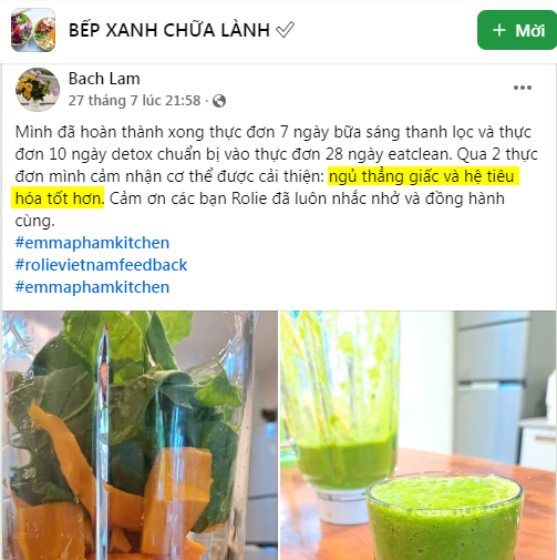 Mình đã hoàn thành xong thực đơn 7 ngày bữa sáng thanh lọc và thực đơn 10 ngày detox chuẩn bị vào thực đơn 28 ngày eatclean. Qua 2 thực đơn mình cảm nhận cơ thể được cải thiện: ngủ thẳng giấc và hệ tiêu hóa tốt hơn. Cảm ơn các bạn Rolie đã luôn nhắc nhở và đồng hành cùng.