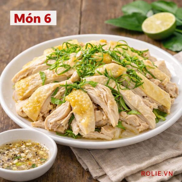 6. Gà hấp lá chanh chấm muối tiêu chanh