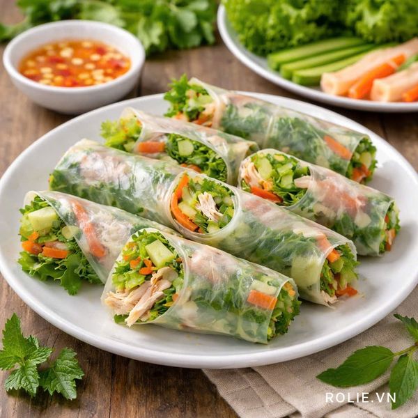 3. Gà cuốn bánh tráng rau sống (ăn là hết ngán)