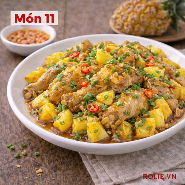 👉 Vị chua ngọt của thơm giúp món gà nhẹ bụng, không bị ngấy mỡ.