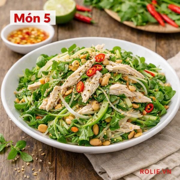 5. Gà bóp rau càng cua (thanh mát – giòn nhẹ)