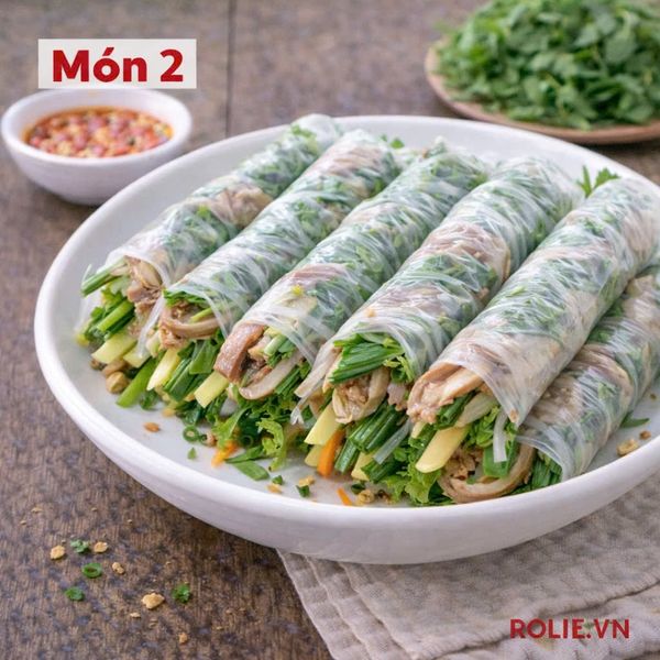 2. Cuốn giò tai rau sống chấm mắm chua cay
