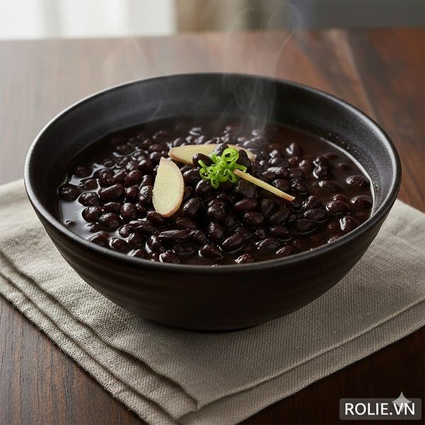 Ninh đậu đen mềm, thêm vài lát gừng (người lạnh tay chân nên dùng).