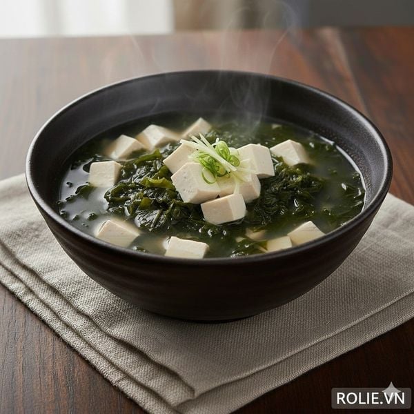 Nấu rong biển 10 phút, thêm đậu phụ, nêm nhạt.