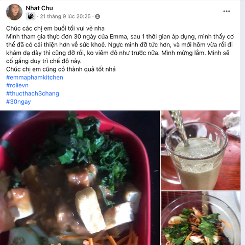 Trải nghiệm khách hàng tham gia thực đơn 30 ngày Eat clean giảm cân của ROLIE
